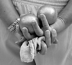 mit der nach unten gewandten Handfläche. Dadurch bekommt die Kugel